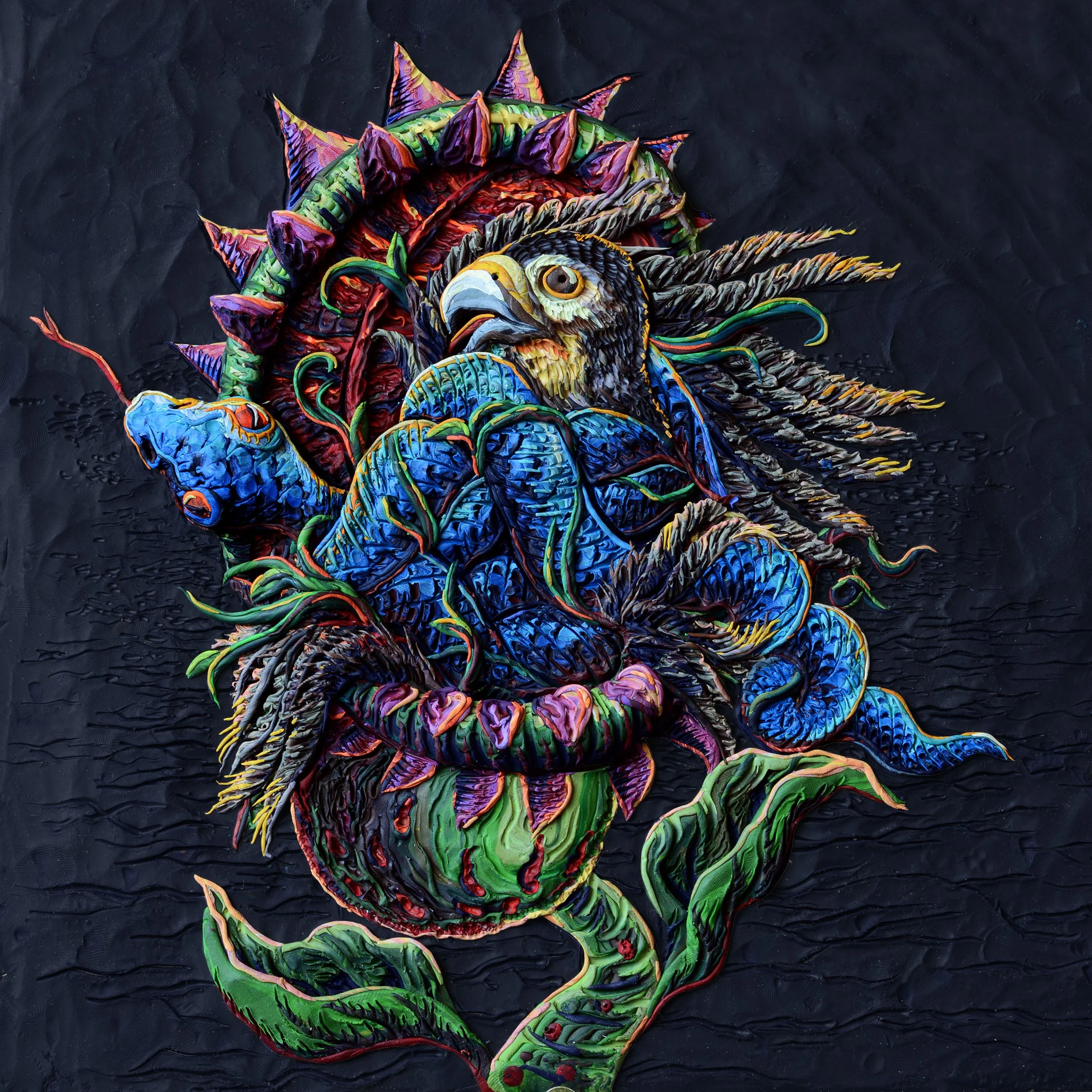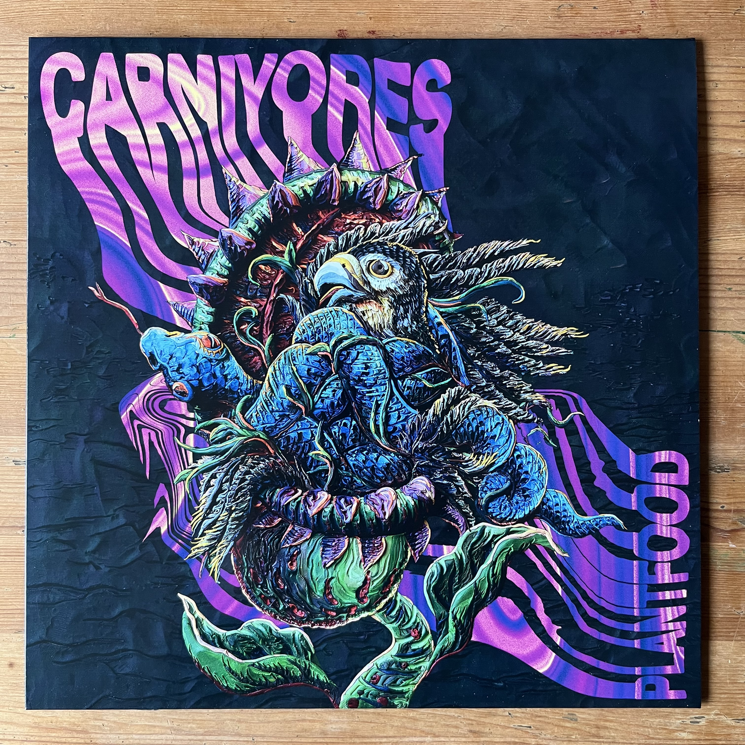 In 2024 Plantfood asked me to create their debut album, designed specifically to be printed as a vinyl. The brief was to create a carnivorous plant consuming animals in a desolate landscape. I decided to make this using plasticine, to create a sculpted painting embodying the visceral and textured elements of the imagery. With graphic design by Jonathan Lodder.